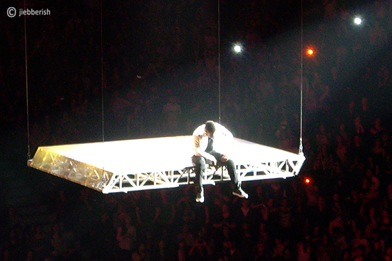 Usher appeared from the opposition of the stage, was carried by this mobile, hanging, mini-stage: